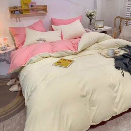 4/6 Piece Cream and Pink Reversible Duvet Set- All Season Reversible Bedding Set, Hotel Quality Duvet +Matching Pillowcases and Bedsheet Set (Sizes: 4 by 6, 6 by 6, 6 by 7, 7 by 7) Cream& Pink Color