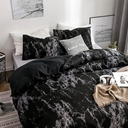 4/6 Piece Black Marble Duvet Set For Kids Teens Adult, All Season and Breathable Marble Quilted Duvet with Bedsheet and Pillowcases (Sizes: 4 by 6, 6 by 6, 6 by 7, 7 by 7)