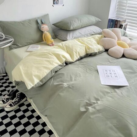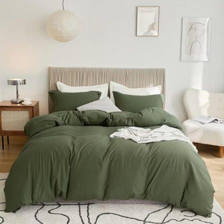4/6 Pcs Green Duvet Set 4by6/ 6by6/ 6by7/ 7by7 Size - Soft Breathable and Durable Quilted Duvet with 1 Fitted Bedsheet and 2/4 Pillowcases Set