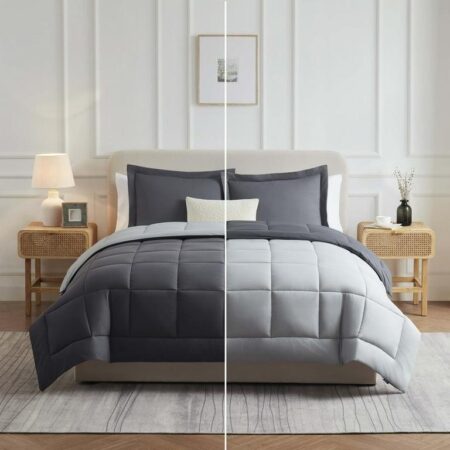 4/6 Piece All Season Grey/Light Grey Duvet Set, Extra Soft and Breathable Down Alternative Duvet with Bed sheet and Matching Pillowcases 4 by 6, 6 by 6, 6 by 7, 7 by 7 Reversible Bedding