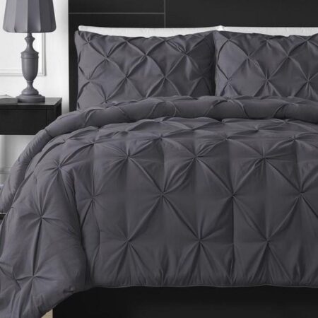 100% American Cotton Dark Grey Pintuck Duvet Set 4by6/ 6by6/ 7by7/ 7by7 Size, All Season Soft and Breathable Pinch Pleated Cotton Duvet with 1 Bedspread and 2/4 Pillowcases Set