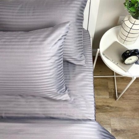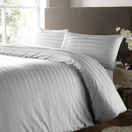 100% Tiny Stripes Grey Luxury Cotton Duvet 2/4 Pillowcases Bedsheet High Quality Cotton Available in All Bed Sizes