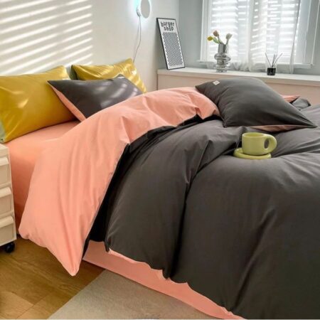 4/6 Piece Cotton Reversible Duvet Set, Soft Orange and Black Reversible Duvet with 1 Bedsheet and 2/4 Pillowcases (4by6/ 6by6/ 6by7/ 7by7 Sizes)