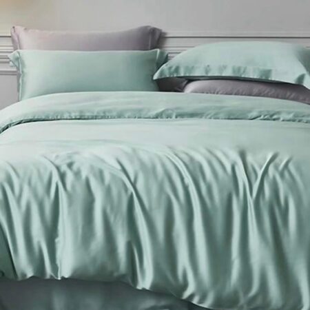 100% Silk Green Quilted Duvet Set - Luxury Feel, Bedsheet and Matching Pillowcases Included (3 by 6, 4 by 6, 6 by 6, 6 by 7, 7 by 7)