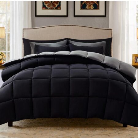 4-6 Piece Super Soft Black and Grey Reversible Comforter Set 4 by 6/ 6 by 6/ 6 by 7/ 7 by 7 Sizes, All Season Bedding Set - 1 Duvet, 1 Bedsheet and 2/4 Matching Pillowcases Set