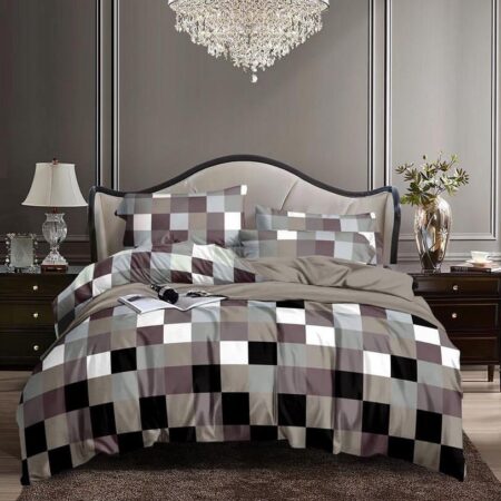 100% Egyptian Cotton Printed Duvet Set 4by6/ 6by6/ 6by7/ 7by7 Size, Soft, Skin-Friendly and Breathable Plaid Printed Bedding Set (1 Thick Duvet, 1 Fitted Bedspread and 2/4 Pillowcases Set)