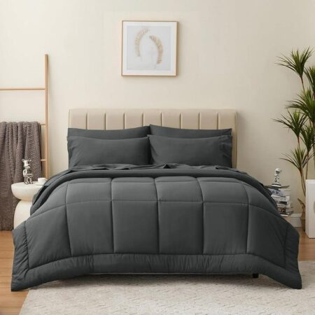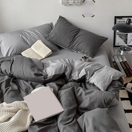 4/6 PCS DarK Grey Bedding Set 4by6/ 6by6/ 6by7/ 7by7 Sizes, All Season Comfortable and Durable Quilted Duvet, Bedsheet and Pillowcases Set
