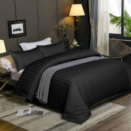 100% American Cotton Stripe Duvet Set 4by6/ 6by6/ 6by7/ 7by7 Size, High Quality, Soft and Breathable Classic Striped Bedding Set 4/6 Pieces( 1 Duvet, 1 Bedsheet and 2/4 Pillowcases Set) Black Color