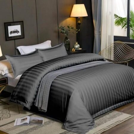 100% American Cotton Stripe Duvet Set 4by6/ 6by6/ 6by7/ 7by7 Size, High Quality, Soft and Breathable Classic Striped Bedding Set 4/6 Pieces( 1 Duvet, 1 Bedsheet and 2/4 Pillowcases Set) Dark Grey Color