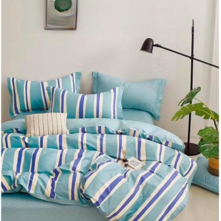 100% Cotton Quilted Duvet Set 3by6/ 4by6/ 6by6/ 6by7/ 7by7 Size, Soft, Durable and Breathable Striped Print Duvet with 1 Fitted Bedsheet and 2/4 Pillowcases Set