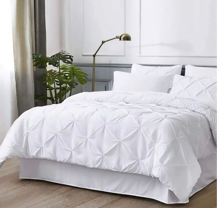 • The breathable fabric ensures a comfortable night’s sleep, making it ideal for year-round use.  transform your bedroom into a luxurious retreat with the white pintuck duvet set. Experience the ultimate in comfort and style with this exquisite bedding set.