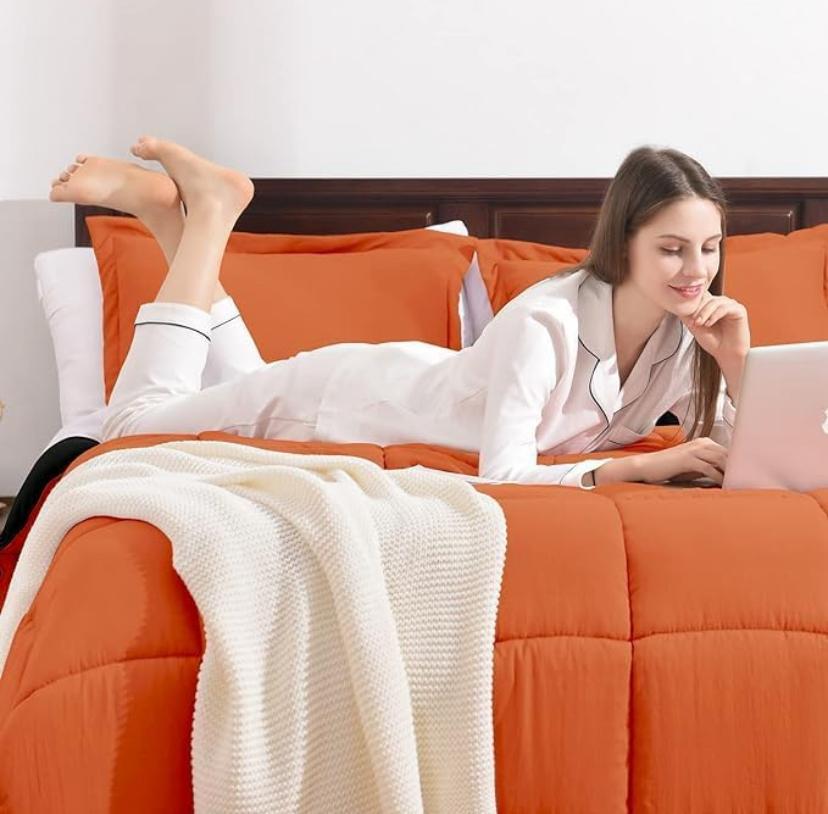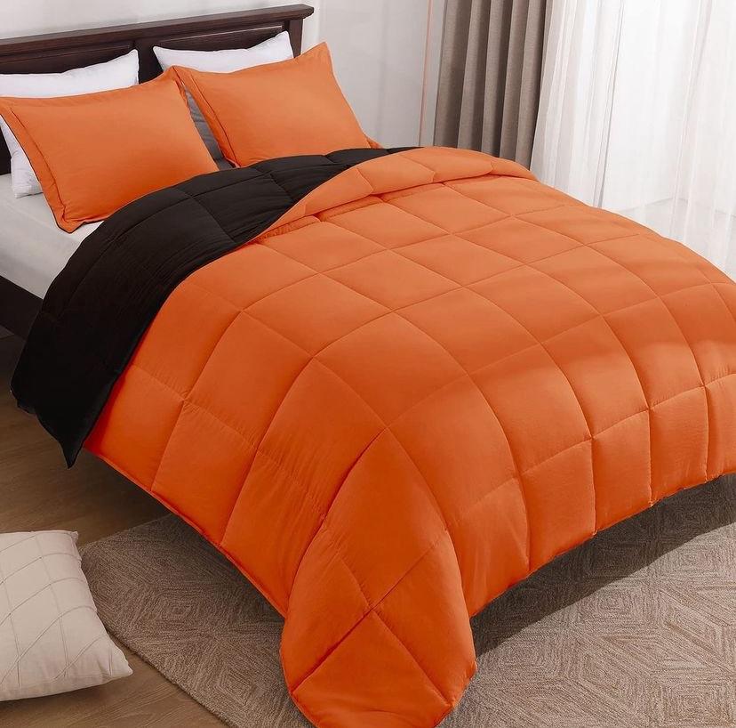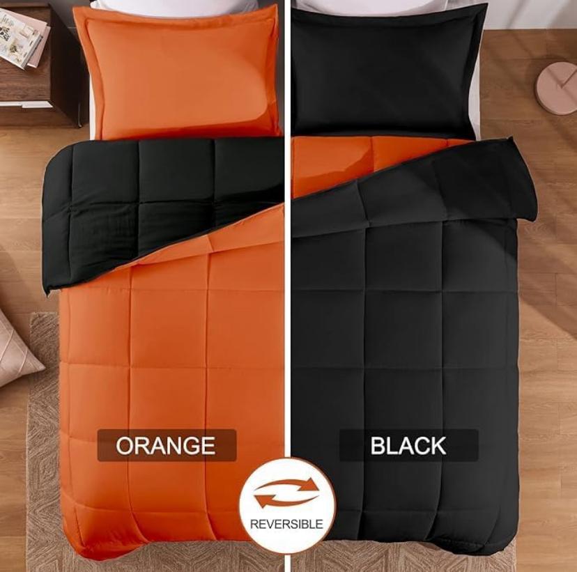 • Reversible Design, Double the Style: Tired of the same old look? Flip your duvet to switch between a sunny orange and a sleek black. This reversible design offers two distinct looks to suit your mood and decor.