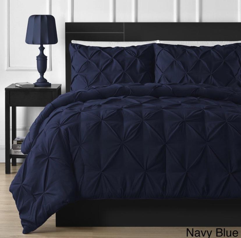 - All-Season Comfort: our navy blue pinch pleat duvet set is designed to keep you cool and refreshed during the warmer months while offering cozy warmth in the colder seasons.