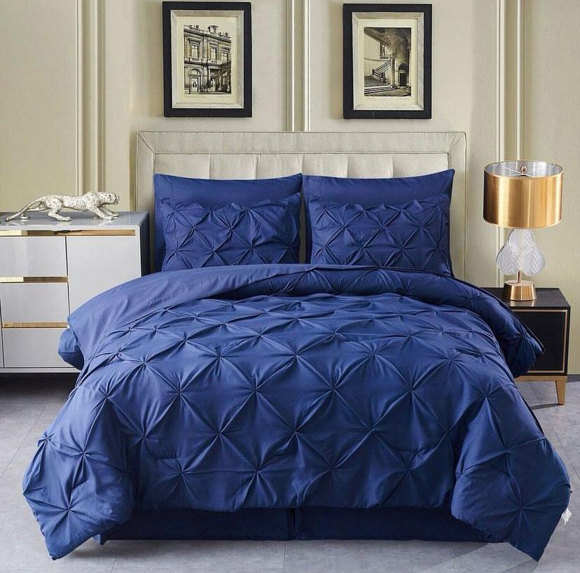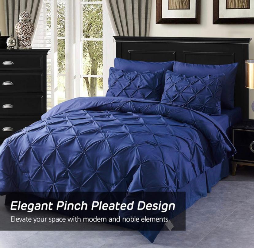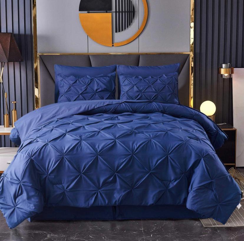 4/6 Pieces Pintuck Pinch Pleat Duvet Set 4by6/ 6by6/ 6by7/ 7by7 Size, All Season Soft, High Quality Pintuck Duvet with 1 Bedsheet and 2/4 Pillowcases Set Navy Blue )