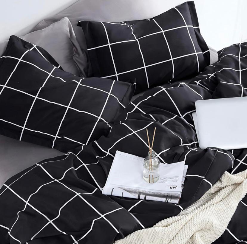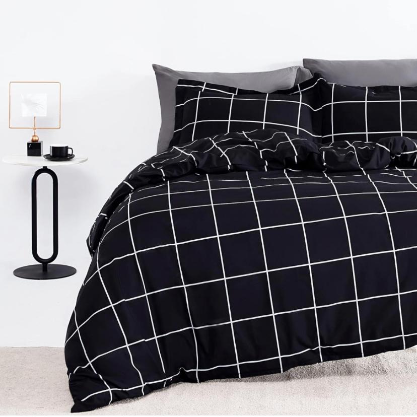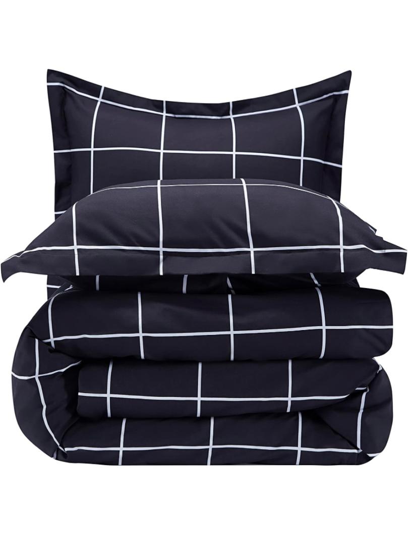 - Durable Construction: The durable fabric ensures this black grid pattern duvet set withstands regular use and washing without losing its shape or softness. Enjoy the long-lasting quality and comfort of this bedding set.