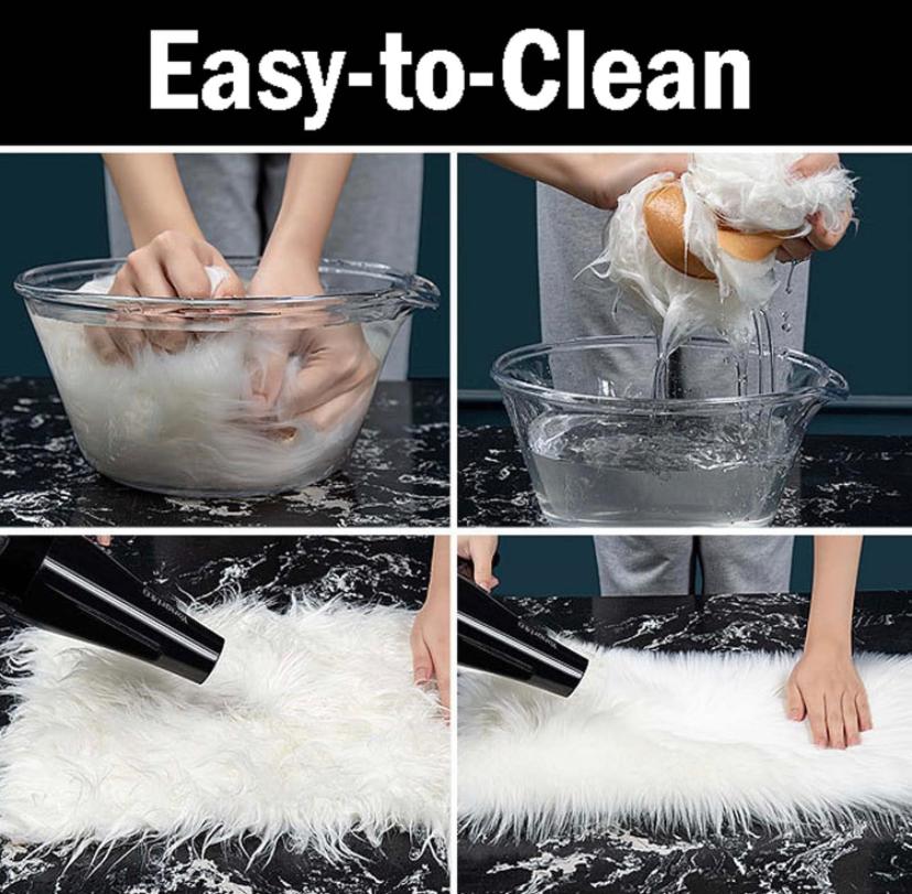 - Easy Clean and Care: Our Faux Sheepskin Area Rug can be Machine wash or hand wash, without worrying about fading or shedding. Do not dry with heat, it will ruin the pile and texture, hang dry in shade.
