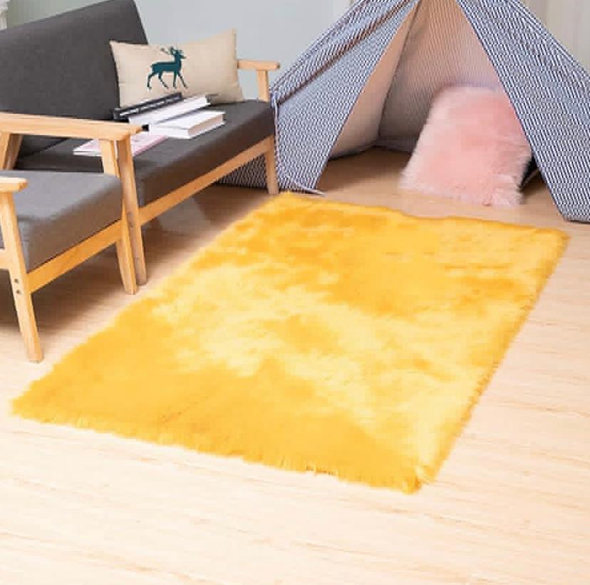 Faux Fur Fluffy Rugs, Soft Fluffy Shaggy Area Rugs, Home Decorative Floor Rugs for Bedroom Living Room (round Shape, 3ft x 5ft, 4ft x 6ft, 5ft x 7ft, 7ft x 10ft )Yellow
