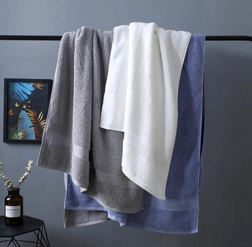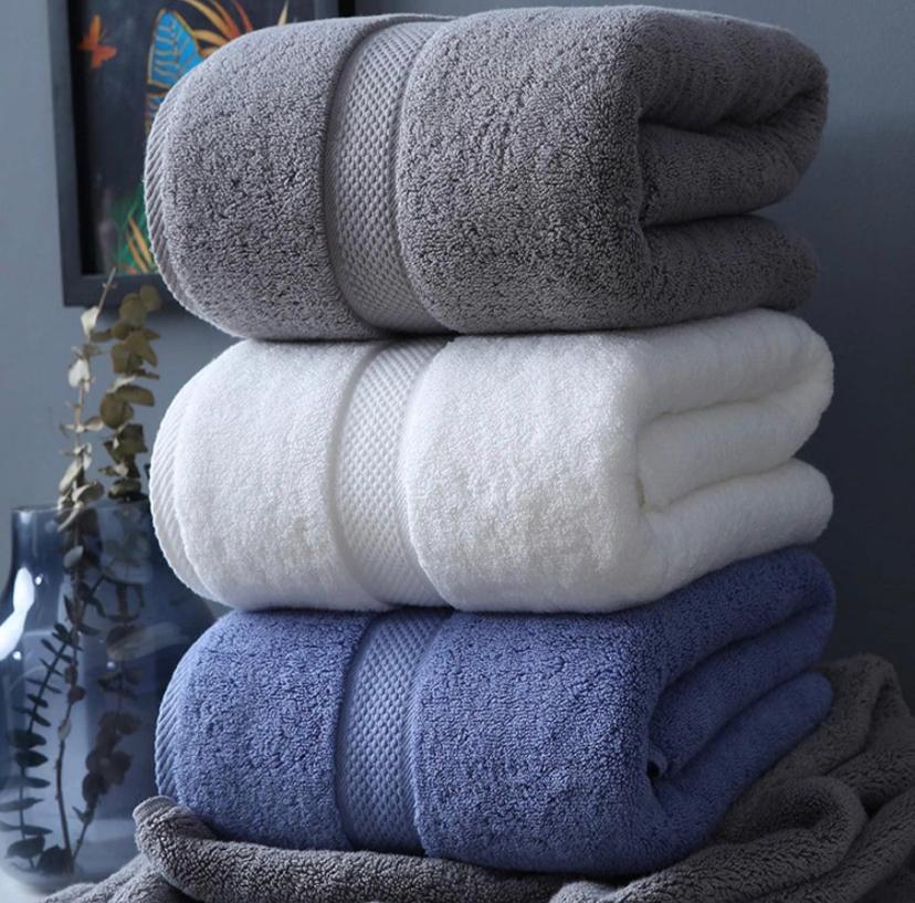 Large Bath Towel – 100% Super Absorbent Cotton Bath Towel Soft and Lightweight, Quick Dry Towel for Spas, Hotels, Home, Bathroom, Gym, Great Souvenir(White, Blue, Grey)