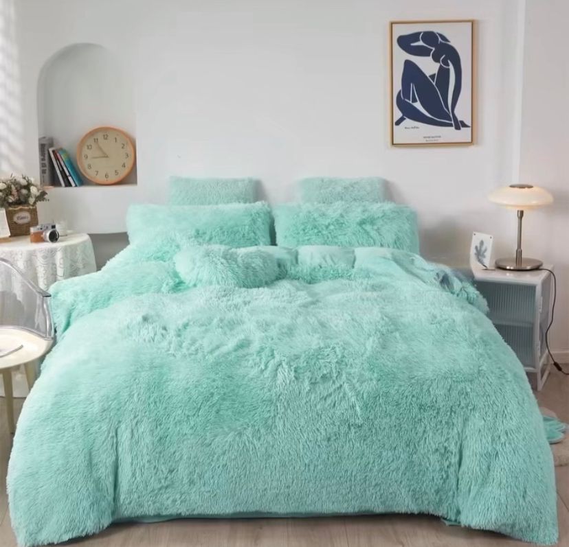 Light Blue Fur Duvet Set, Super Comfortable, Fluffy Soft and Very Lush Blue Fur Bedding Set, Sizes: 4 by 6, 6 by 6, 6 by 7, 7 by 7