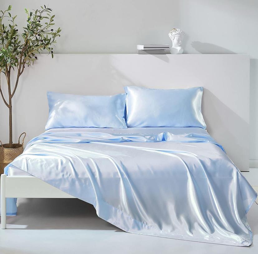 - Luxurious Silk-Cotton: Transform your bedroom into a luxurious sanctuary with our light blue silk bedspread set. It’s the perfect way to elevate your sleep experience and add a touch of regal elegance to your home. the premium silk-cotton blend is known for its exceptional softness, smooth texture, and breathability.