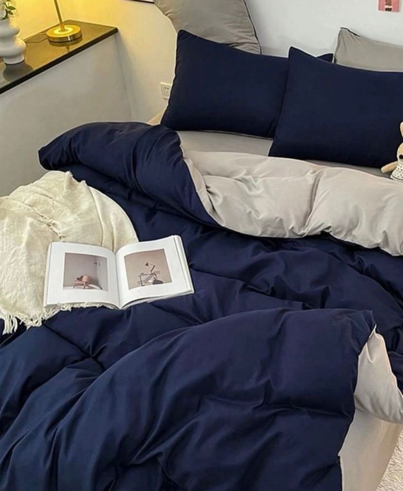 Navy Blue and Grey Reversible Duvet Set – 100% Soft and Body Friendly Cotton Duvet +Bedspread and Pillowcases Bedding Set (Sizes: 4 by 6, 6 by 6, 6 by 7, 7 by 7)
