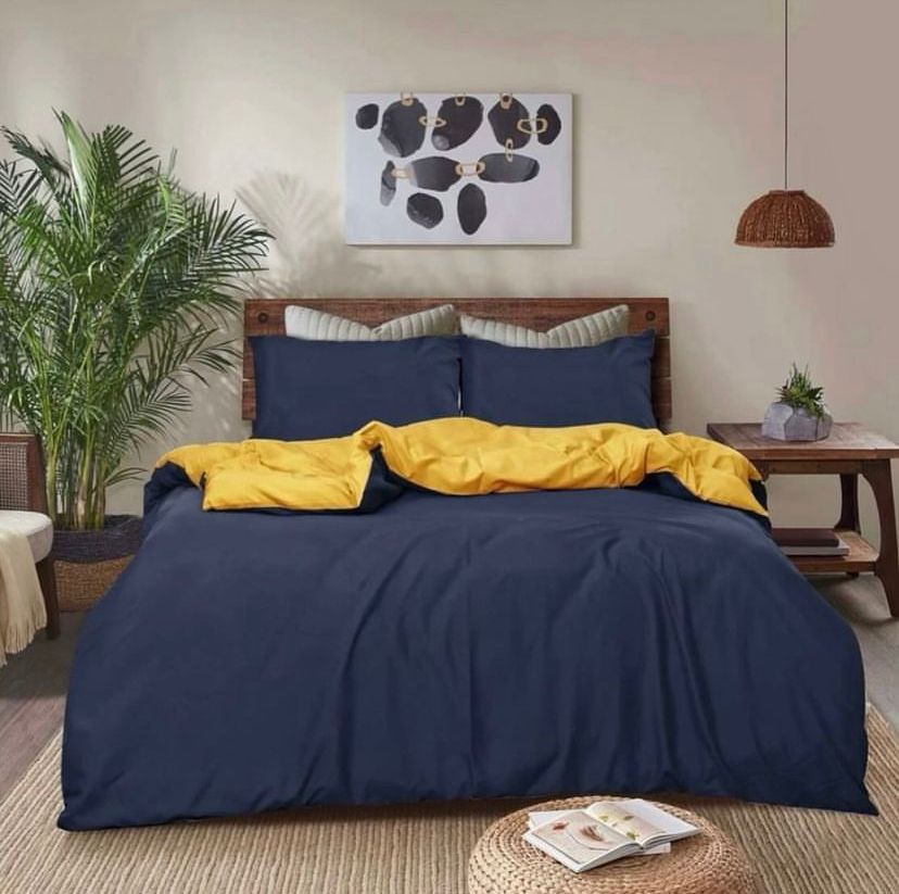 - Elegant and Luxurious Design Featuring a stunning navy blue and yellow color combination, in a box stitched design, this reversible duvet comforter set adds a touch of elegance and sophistication to any bedroom decor.