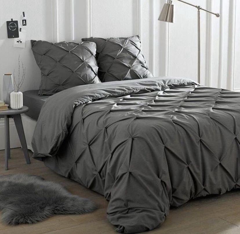 Pinch Pleat Pintuck Grey Duvet Set 4by6/ 6by6/ 6by7/ 7by7 Size, High Quality Fabric Pintuck Grey Duvet with Bedspread and Pillowcases Set, 4/6 Pieces