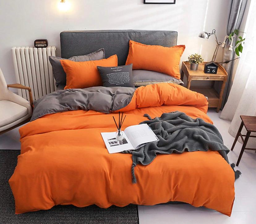 Plain Orange Reversible Duvet Set, Soft Skin-Friendly and Durable Duvet +1 Bedsheet- 2/4 pillowcases 4 x 6, 6 x 6, 6 x 7, 7 x 7 Sizes