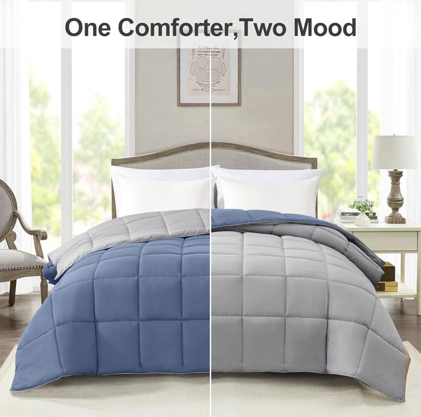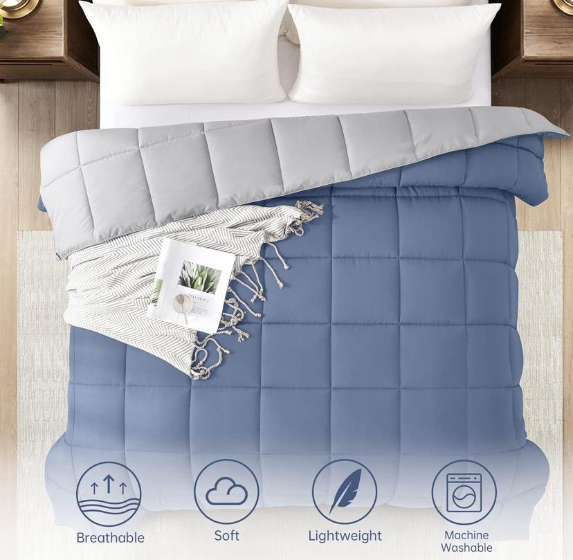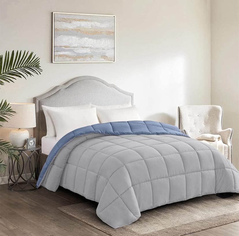 Reversible Duvet Set – 4/6 Piece Box Stitched Soft and Breathable Quilted Duvet with Bedsheet and Pillowcases Set, 4by6/ 6by6/ 6by7/ 7by7 Sizes, Blue / Grey