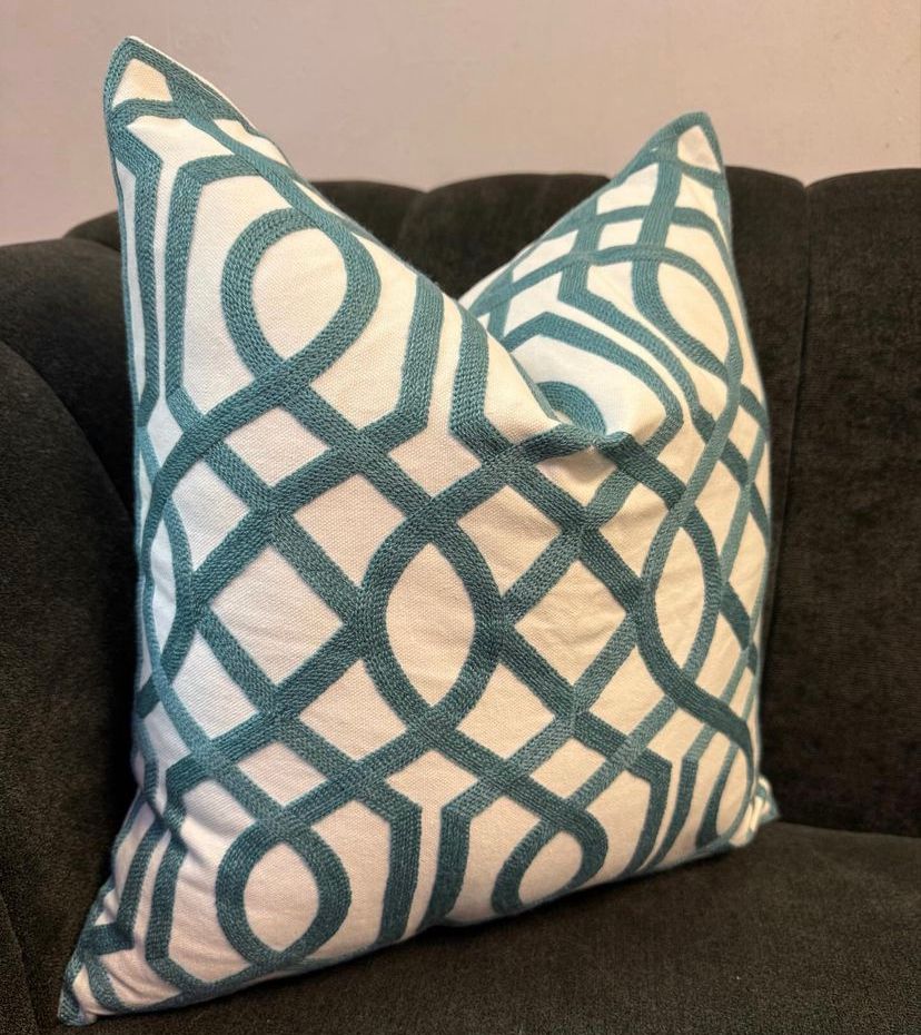 Elevate the aesthetic of any space with the Teal Trellis 18 by 18 Throw Pillow Cover and Insert