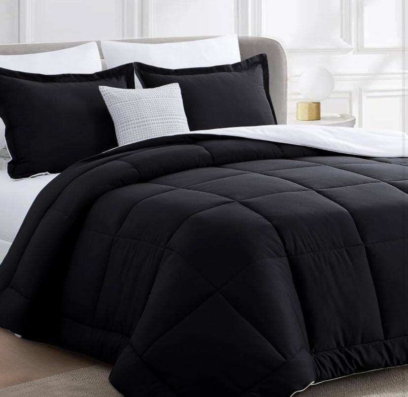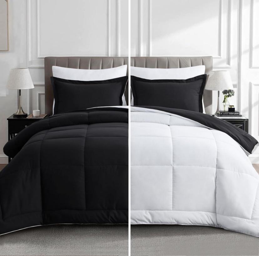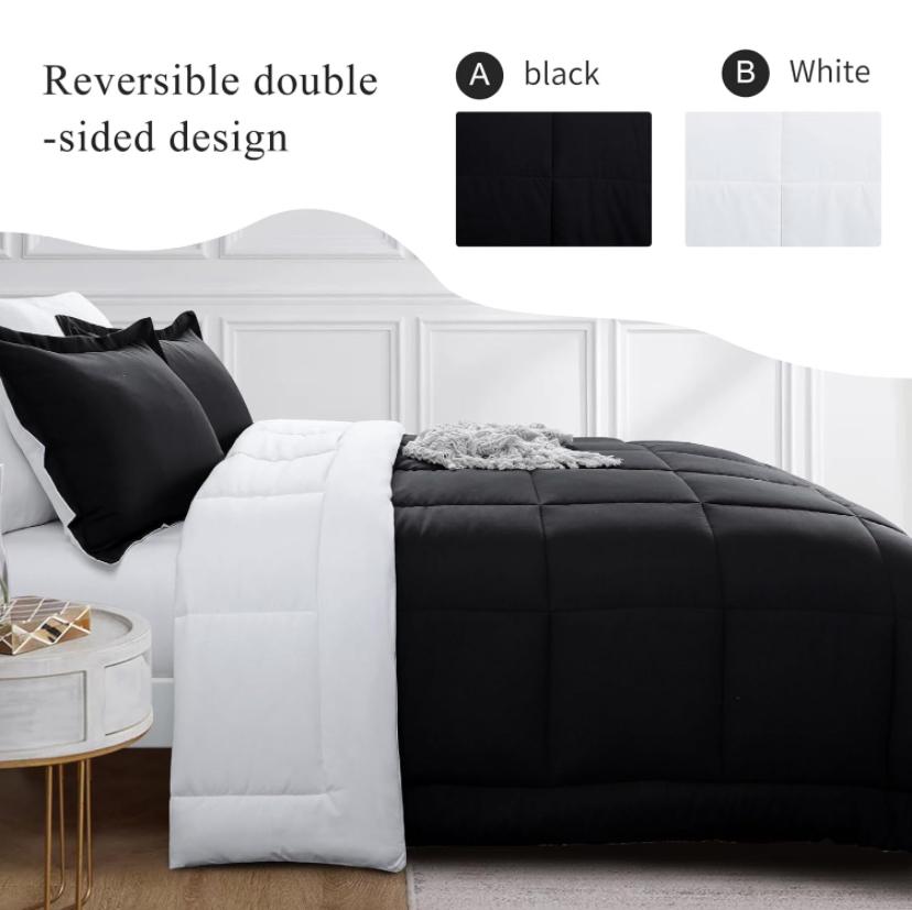 - Reversible Design: Enjoy the flexibility of two looks in one with our reversible comforter. Choose between the crisp white or the sophisticated black side to match your bedroom decor.
