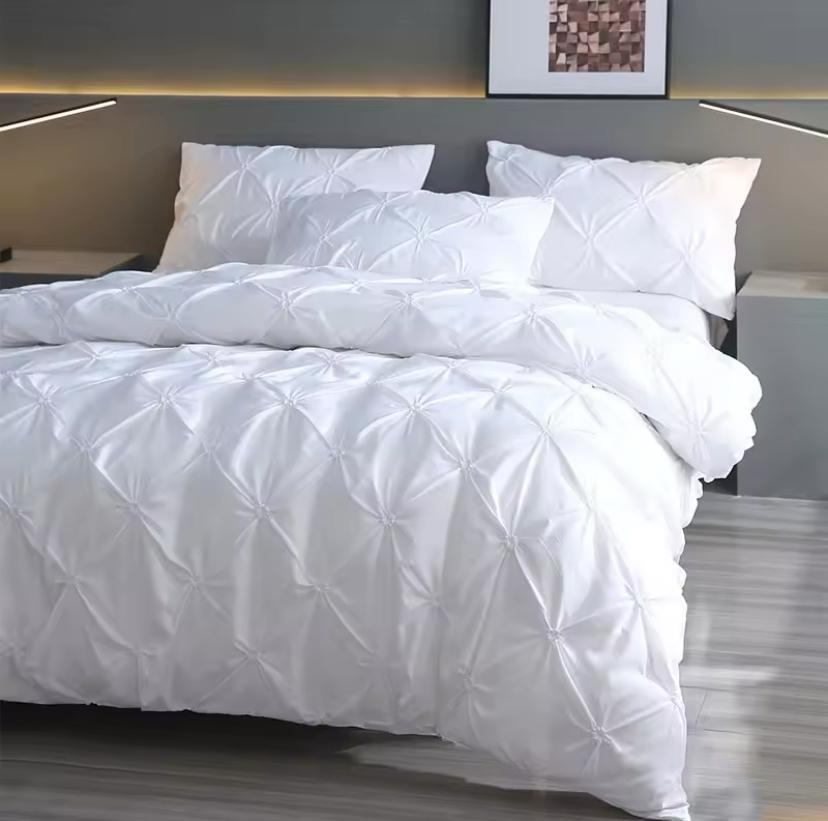 White Pintuck Duvet Set 4by6/ 6by6/ 6by7/ 7by7 Size – Breathable Soft and Quality Pinch Pleated Duvet with 1 Bedsheet and 2/4 Pillowcases Set