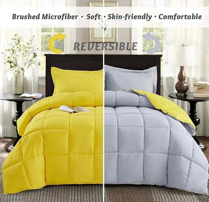Yellow Light Grey Reversible Duvet With Pillowcases and Bedsheet Set, All Season Quality and Soft Reversible Bedding Set (Sizes: 4 by 6, 6 by 6, 6 by 7, 7 by 7)