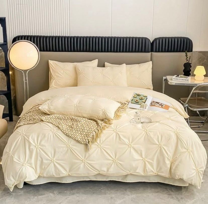 Yellow Pintuck Duvet Set +Matching Bedsheet and Pillowcases Set Soft Breathable Pinch Pleated Pintuck Bedding Set (4 X 6, 6 X 6, 6 X 7, 7 X 7)